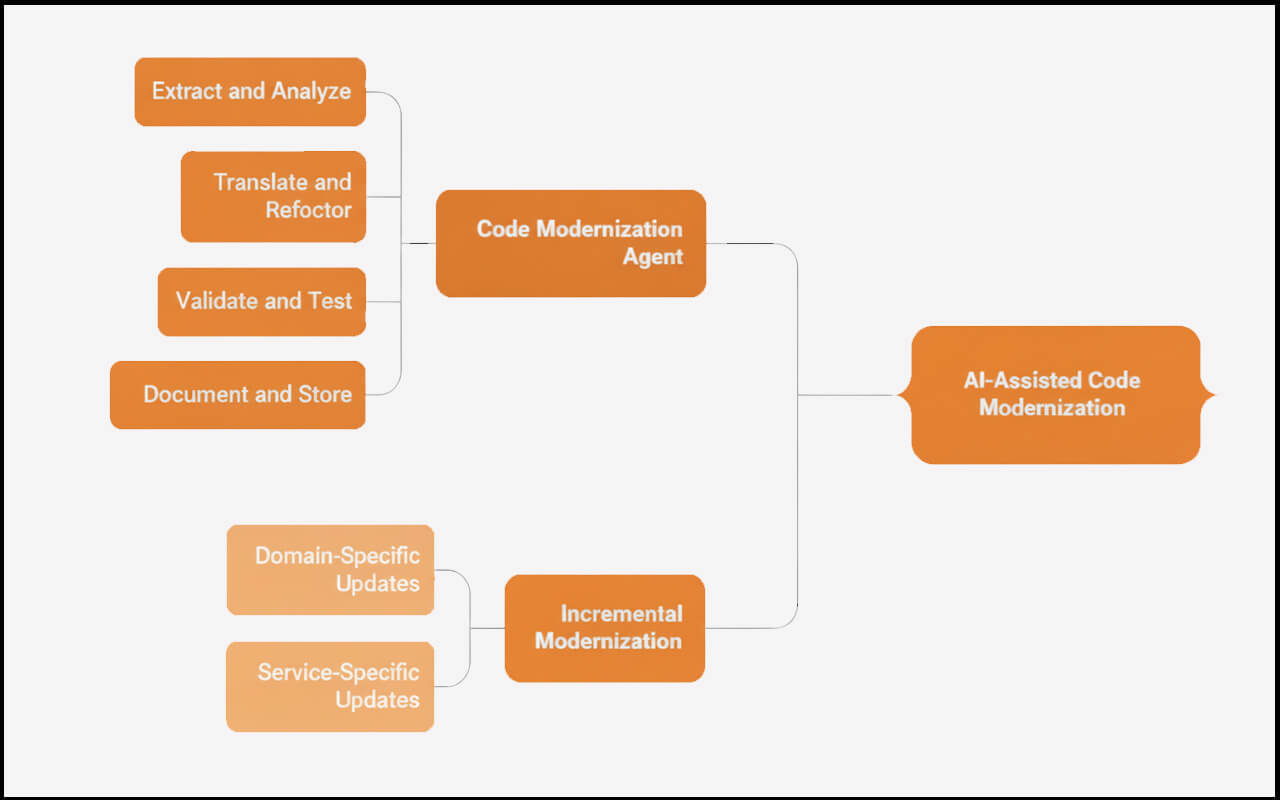 - Code Modernization Agent – translates legacy COBOL or monolithic code into modern architectures, validates it, and builds living documentation.